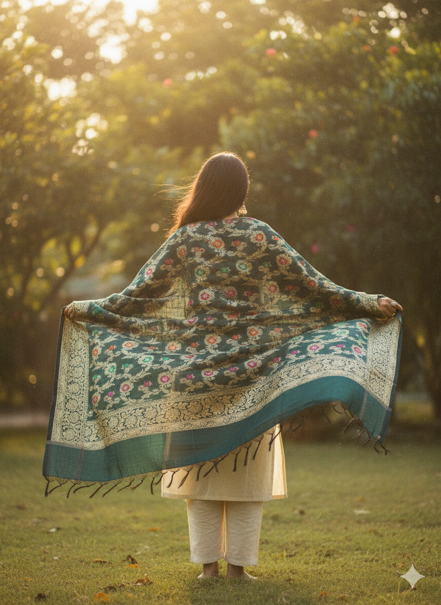 Royal Blue Banarasi Dupatta | Fusion Collection
